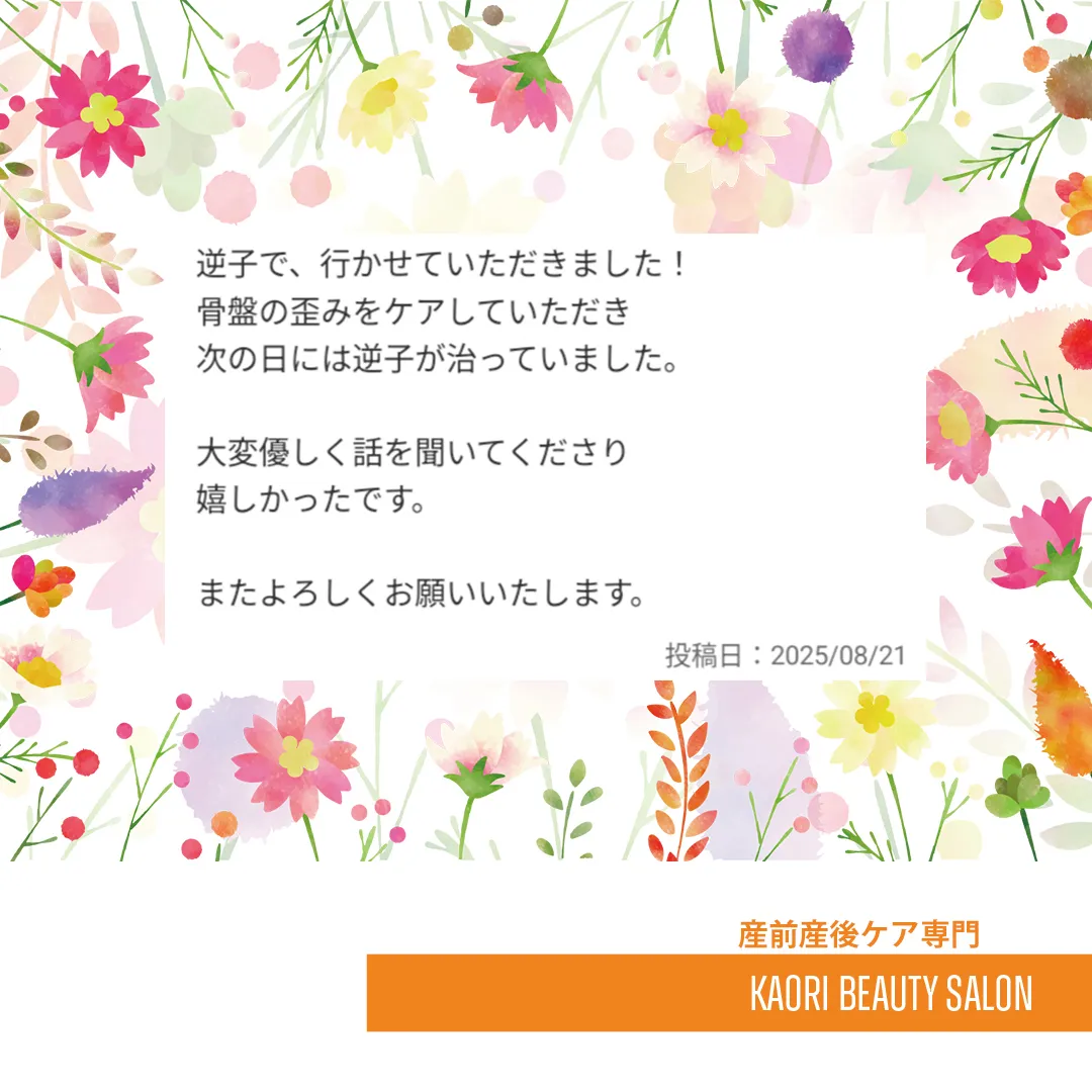 お身体のケアをさせていただいた翌日に逆子が改善され、本当に良かったです。