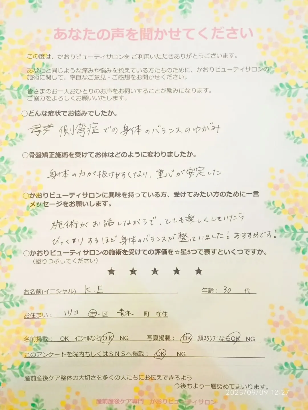 あなたと同じように痛みや悩みを抱えている方たちのために、KAORIの施術に関する事や院の雰囲気など、ご感想をお聞かせください。また、皆様お一人おひとりの喜びの声を聞くことがKAORIの励みになります。