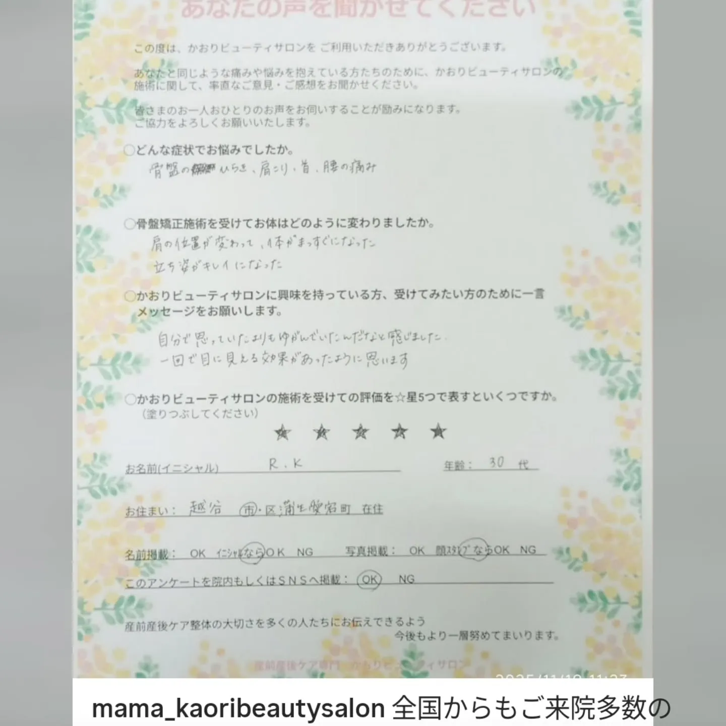 2025年11月に産後整体で初めて