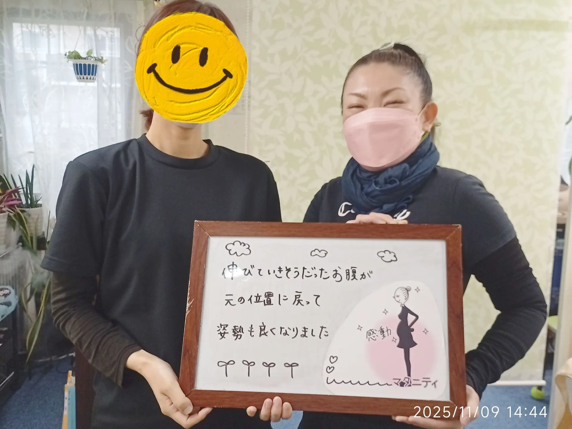 「伸びていきそうだったお腹が、元の位置に戻って、姿勢も良くなりました✨」