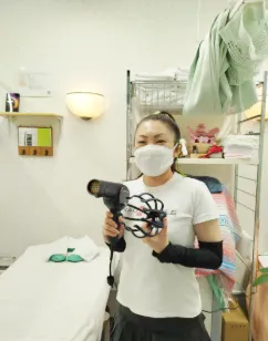 復元ドライヤーPRO8でスタッフと遊んでいる