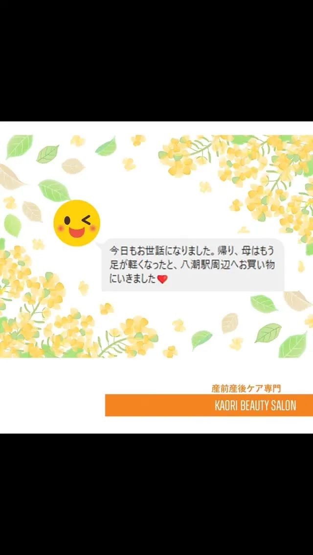こんにちは😊 こんにちは😊草加市の【産前産後ケア専門かおりビューティーサロン】の伊藤香織です。当サロンは、女性と赤ちゃん、そして不調や痛みでお悩みの方のためのケアサロンです🌸毎日お忙しくがんばっている皆さ…