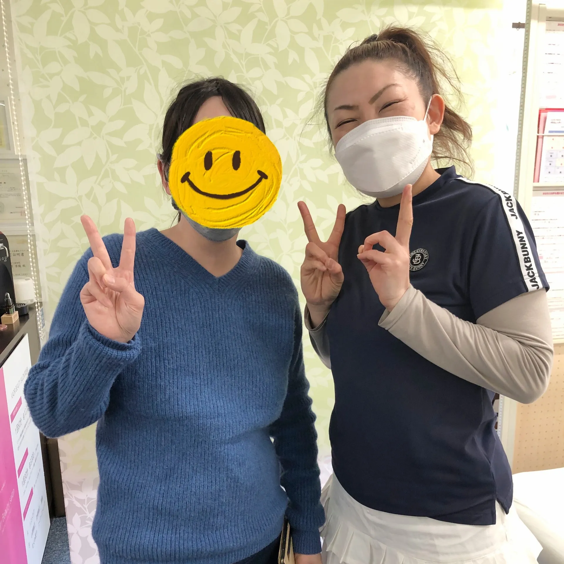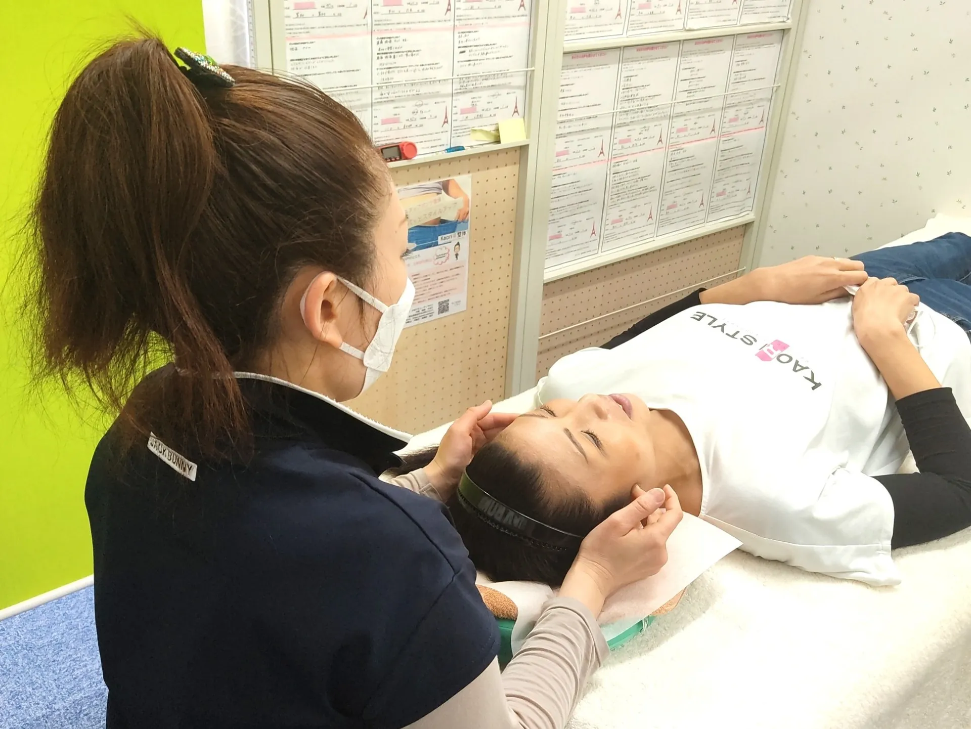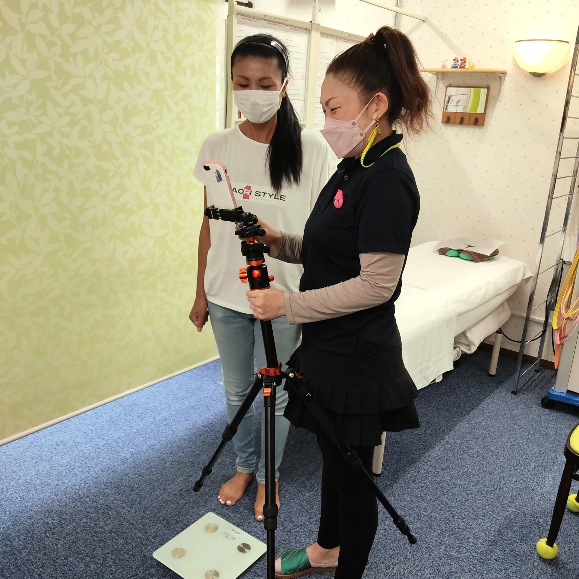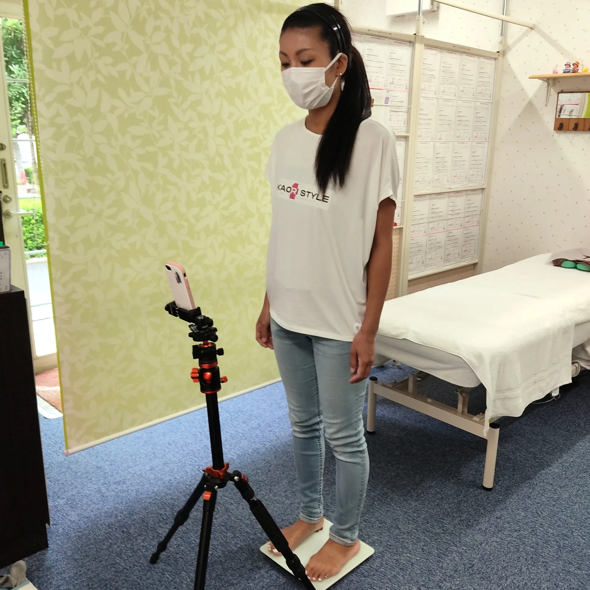 施術後写真撮影 前後左右 グリーンバック+白いカーテン