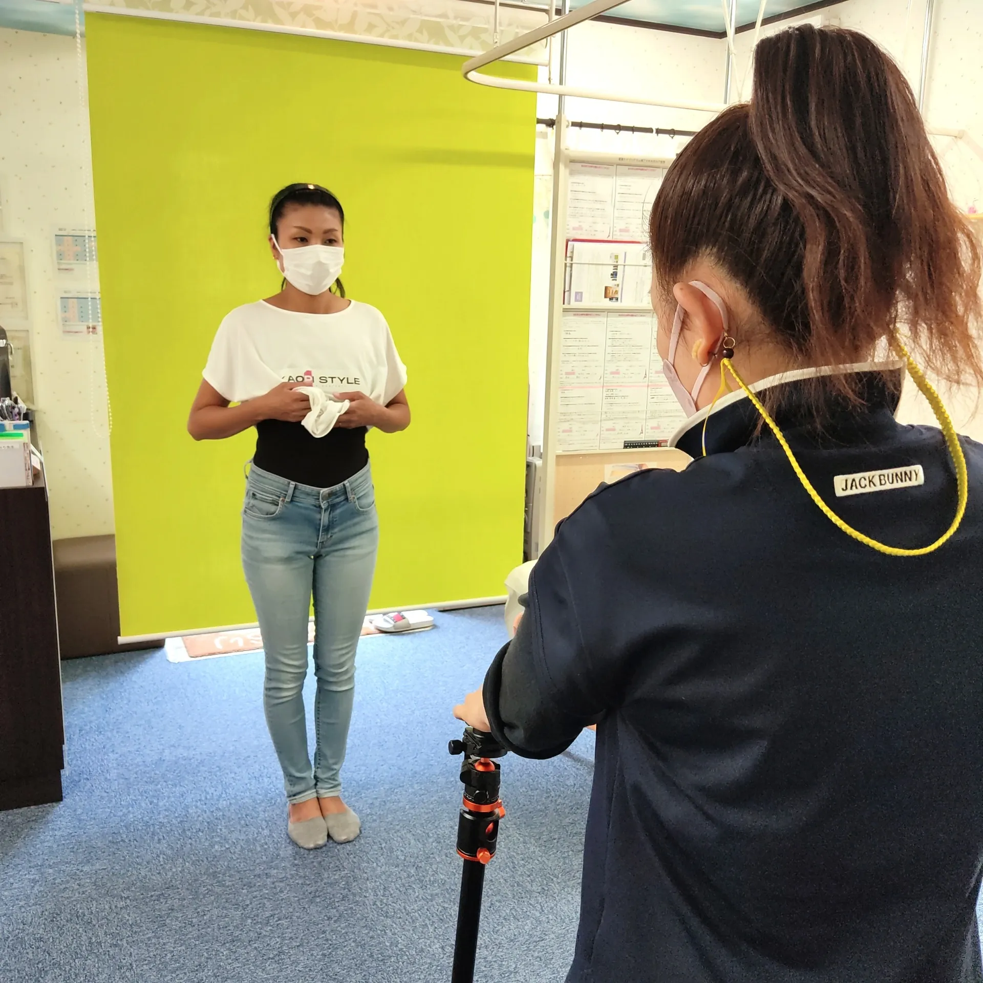 施術前写真撮影 前後左右 グリーンバック