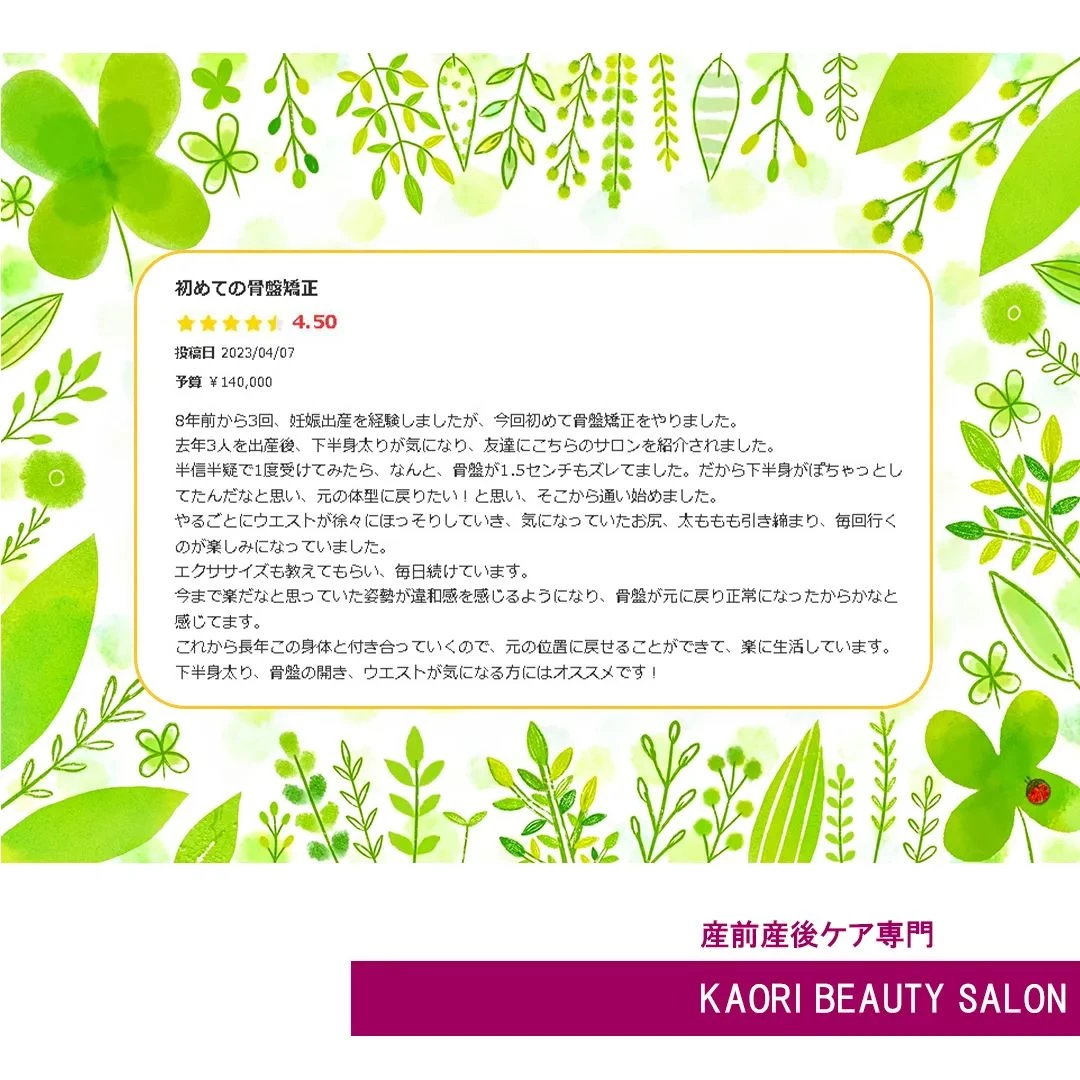 【クチコミをいただきました! 産前産後ケア専門 かおりビューティサロン 草加市】