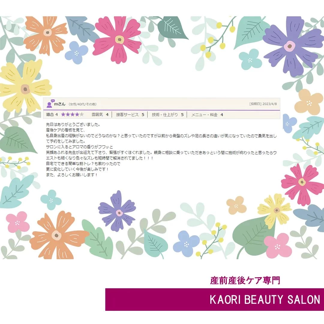 【クチコミをいただきました! 産前産後ケア専門 かおりビューティサロン 草加市】
