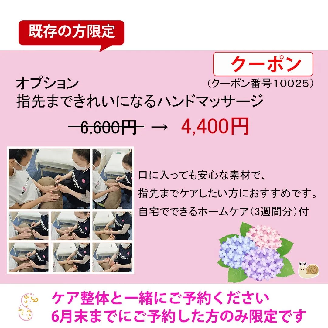 【会員さま限定 指先まできれいになるハンドマッサージクーポン...