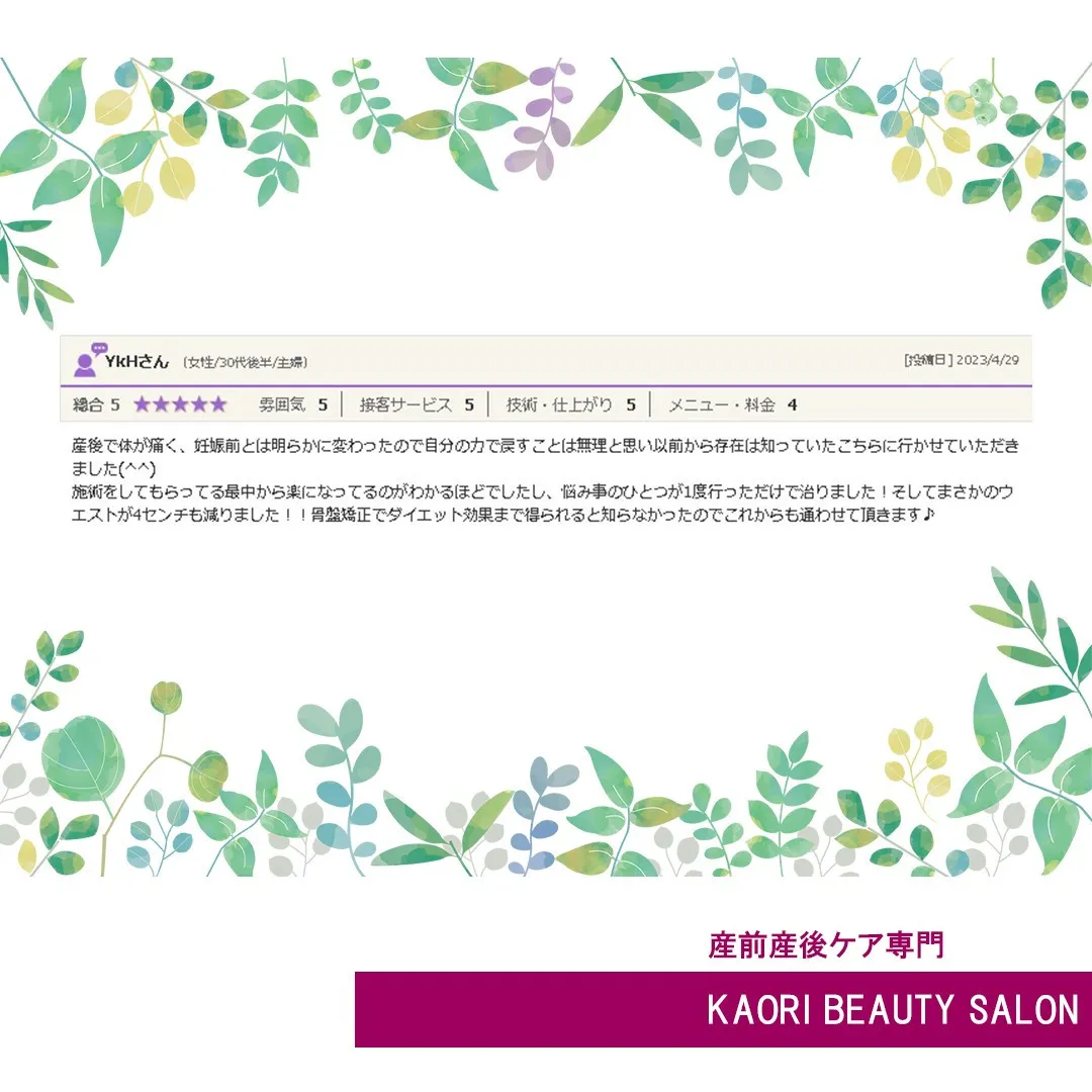 【クチコミをいただきました! 産前産後ケア専門 かおりビューティサロン 草加市】