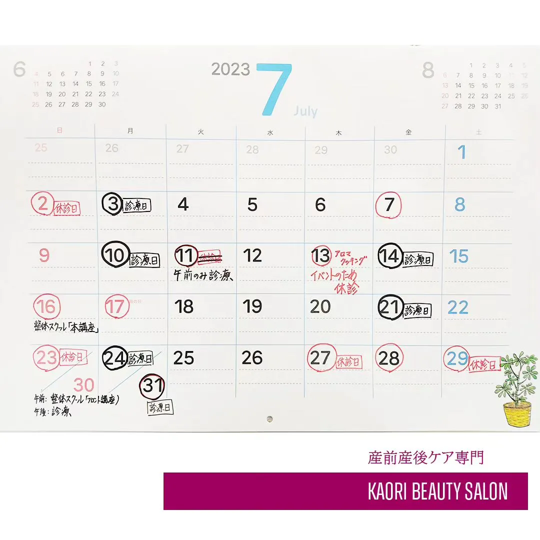 【7月診療カレンダー 産前産後ケア専門 かおりビューティサロ...