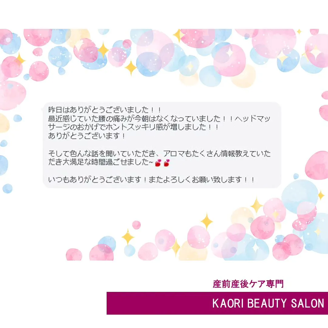 【施術後に、うれしいメッセージをいただきました! 産前産後ケア専門 かおりビューティサロン 草加市】