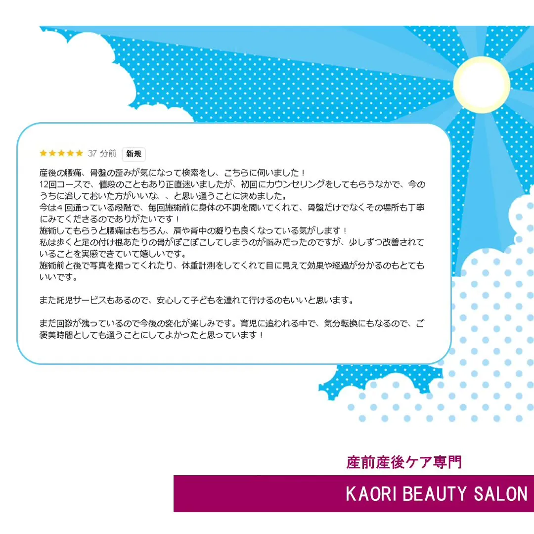 【クチコミをいただきました! 産前産後ケア専門 かおりビューティサロン 草加市】
