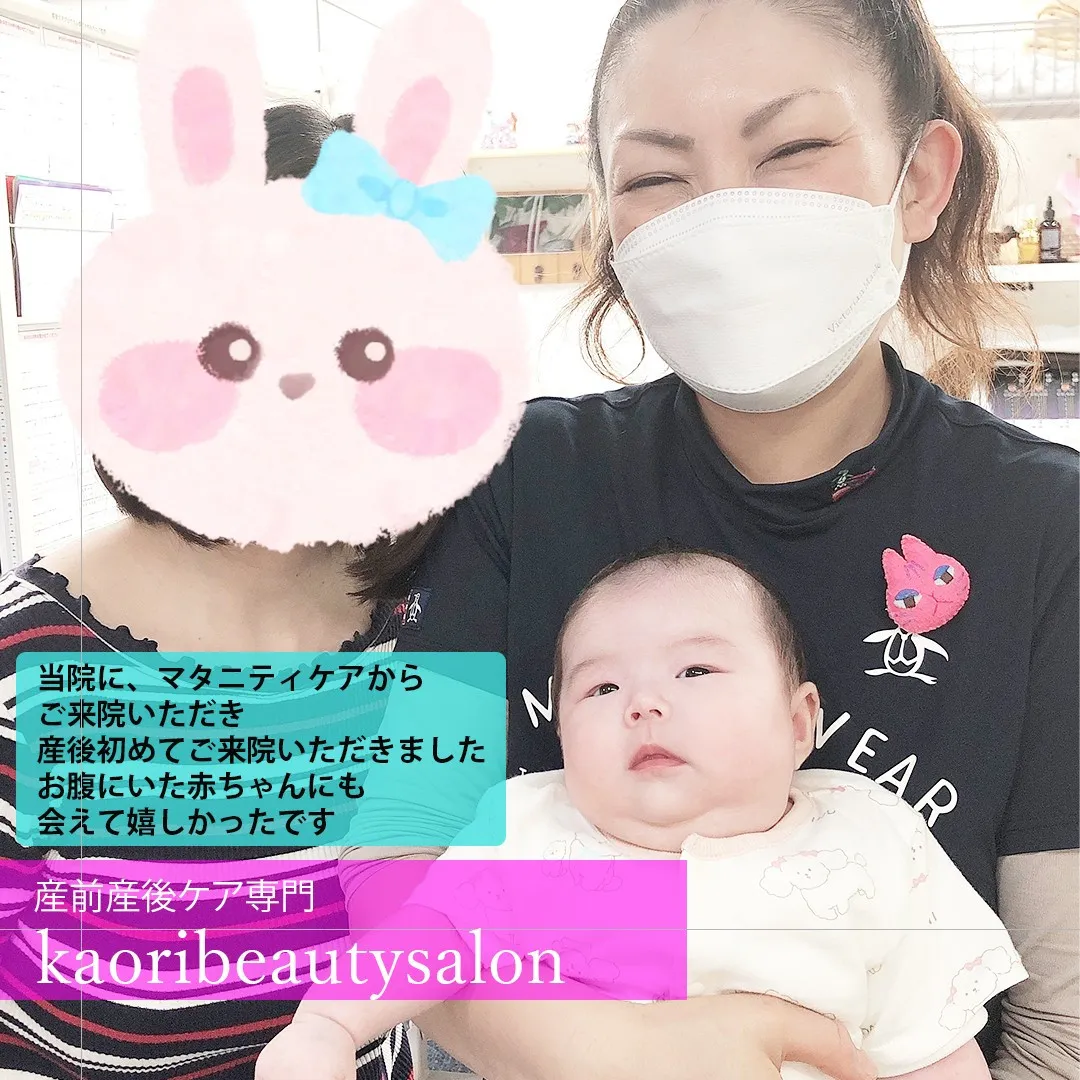 【当院に、マタニティケアからご来院いただき産後初めてご来院いただきました お腹にいた赤ちゃんにも会えて嬉しかったです 産前産後ケア専門 かおりビューティサロン 草加市】