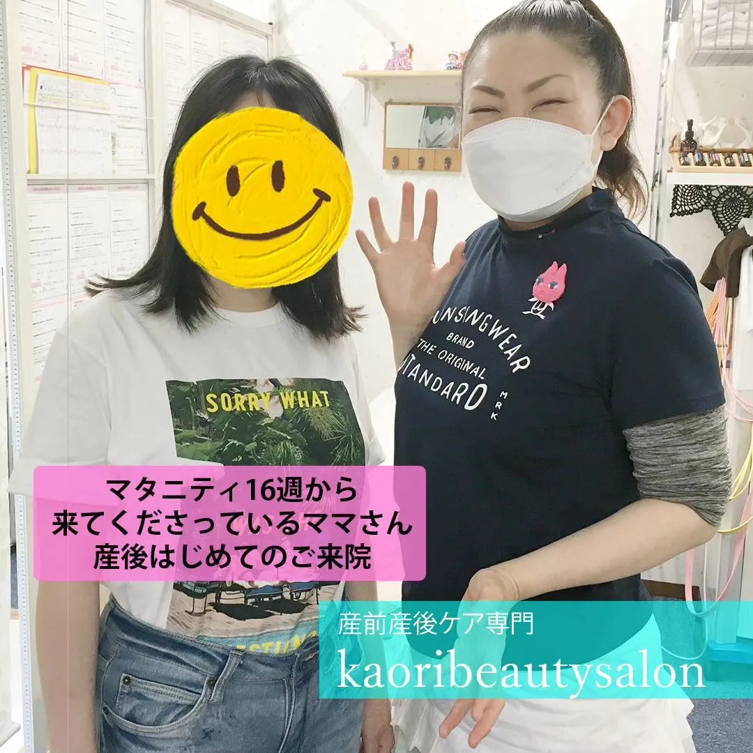 【マタニティ16週から来てくださっているママさん 産後はじめてのご来院 産前産後ケア専門 かおりビューティサロン 草加市】