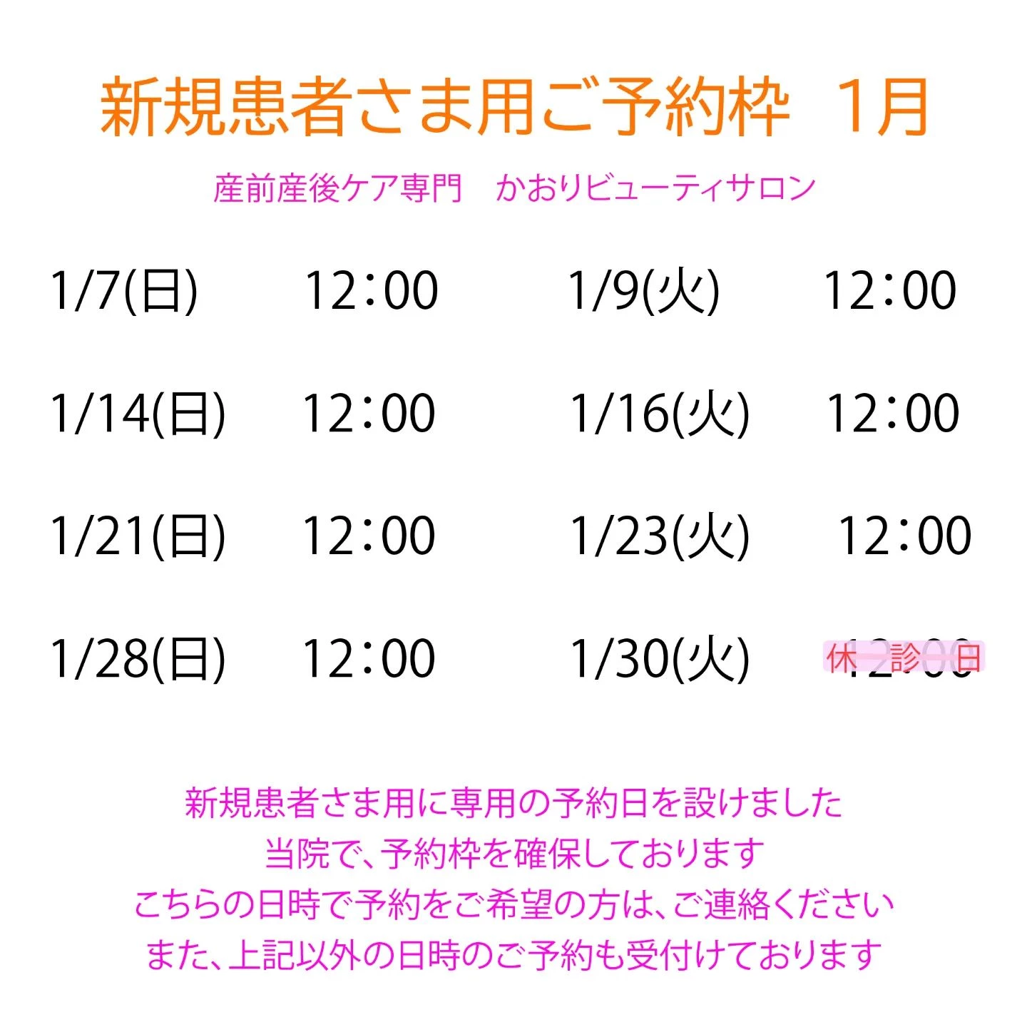 ※※この他の日時も新規患者さまのご予約も受付けております。