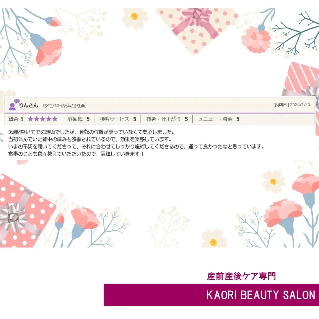 まだまだ、マタニティのお体も変わりますので楽しみに通ってみてくださいね♪