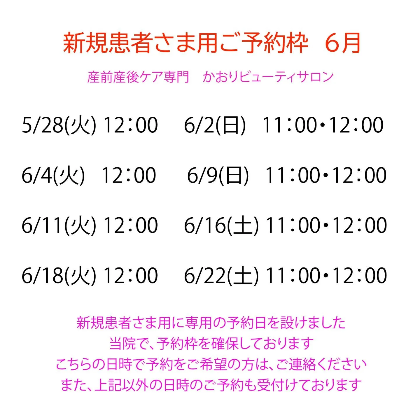 ※※この他の日時も新規患者さまのご予約も受付けております。