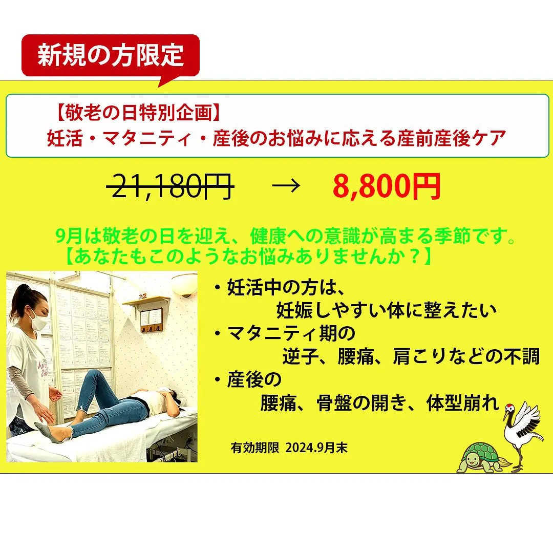【敬老の日特別企画】妊活・マタニティ・産後のお悩みに応える産前産後ケア