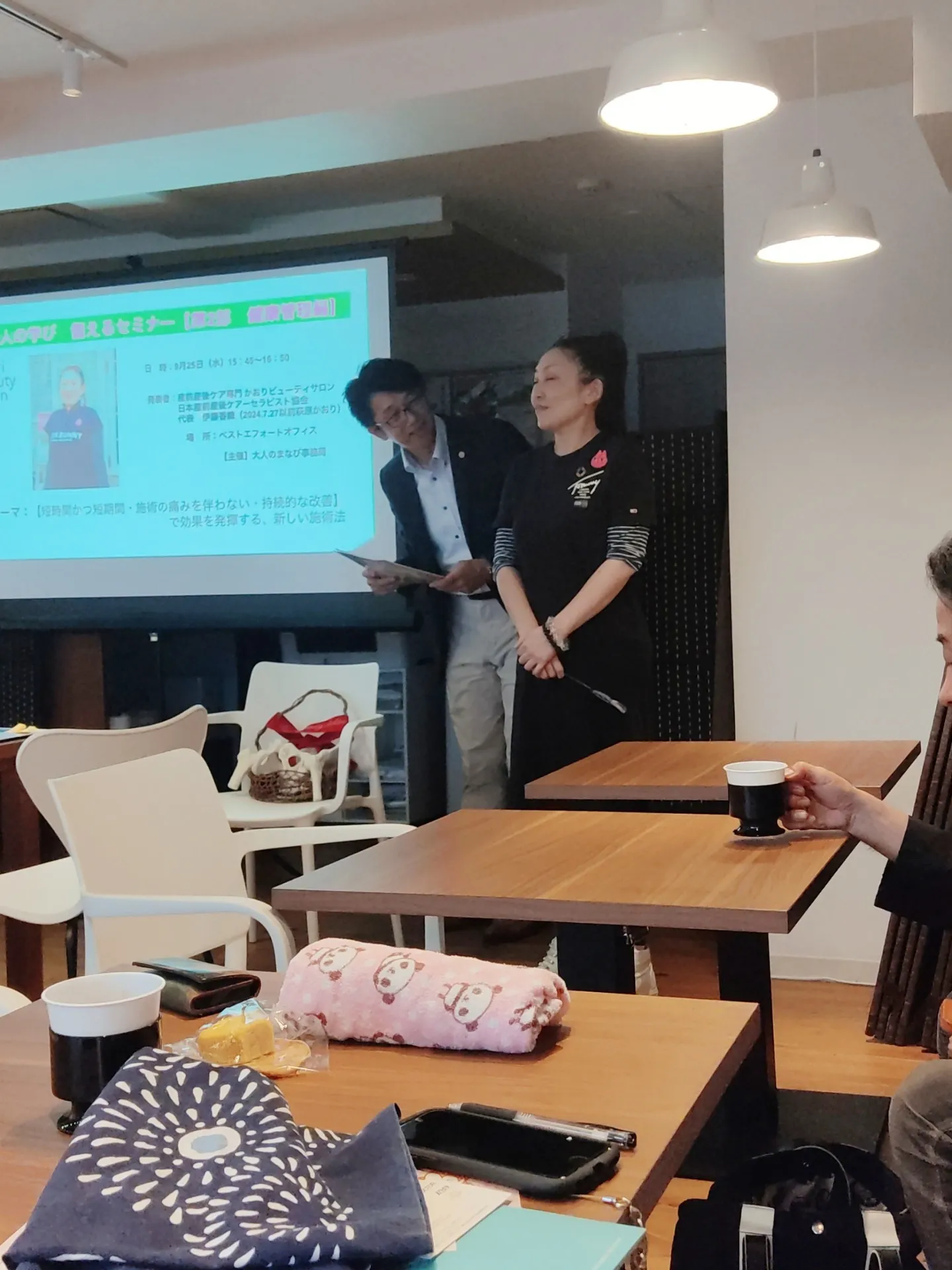 また、腰痛や肩こり、腱鞘炎の改善方法として、即効性のある施術法やセルフケアのハンドマッサージを実際にご体験していただき、ご参加の皆様からは「効果をすぐに実感できました!」との喜びの声をたくさんいただきました。