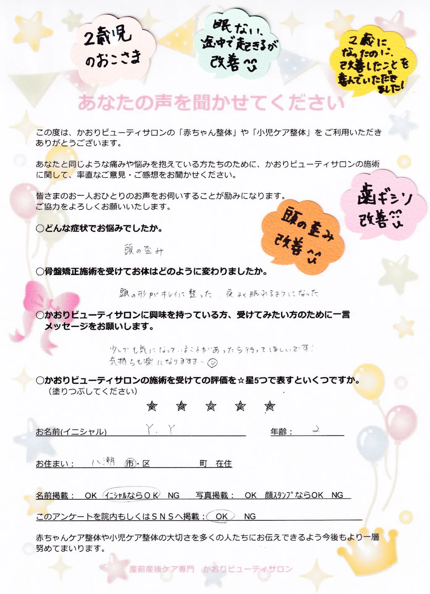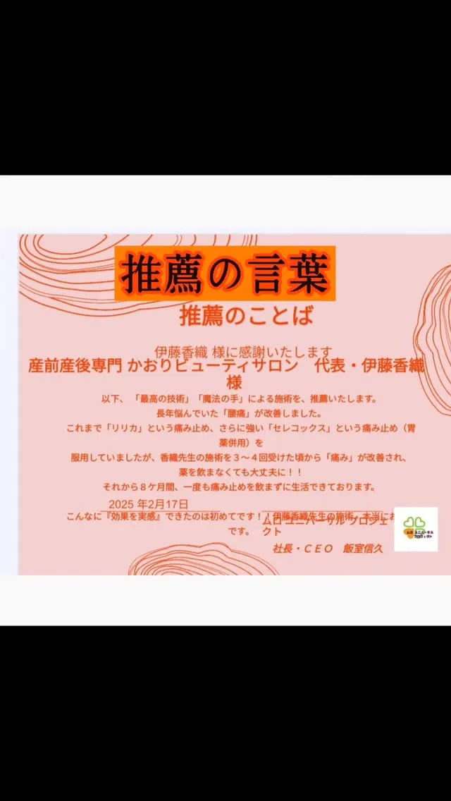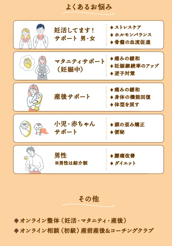 当院では、産前産後専門院の技術で痛み不調改善