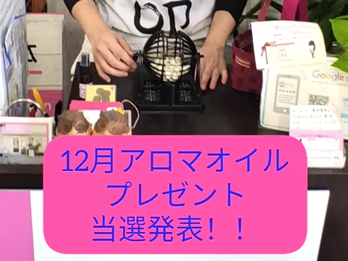 エッセンシャルオイルプレゼント当選番号発表 12月 2024.12.1みなさま、こんにちは! 産前産後ケア専門かおりビューティサロンです。 私たちは、みなさまの日常をよりリラックスできるものにするため、 エッセンシャルオイルの香りで癒しのひとときを提…