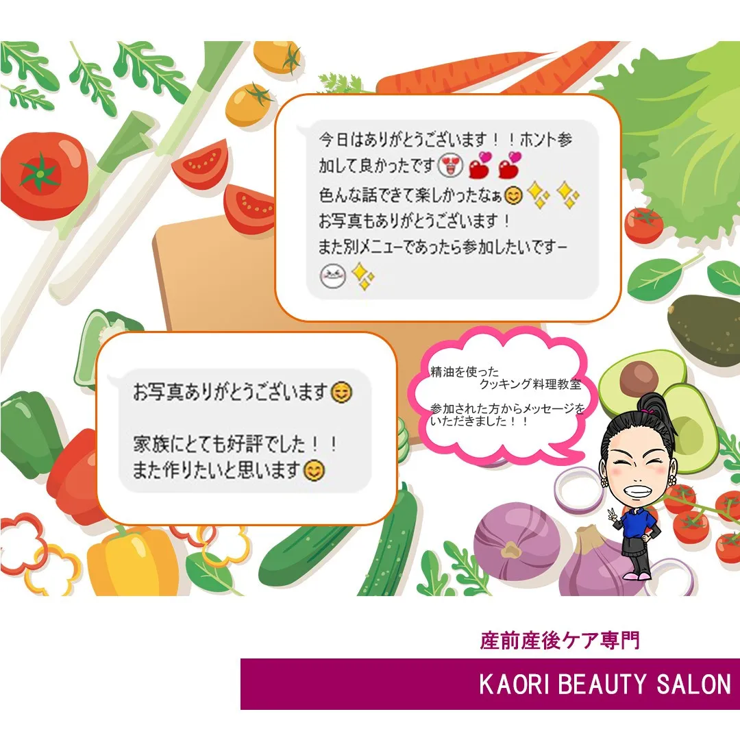 先日開催した【精油を使ったクッキング教室】に 先日開催した【精油を使ったクッキング教室】にご参加された方からうれしいメッセージをいただきました!「ご家族の好評でした」とか「また、参加したいです」などと感想もいただけてうれしかったですメ…
