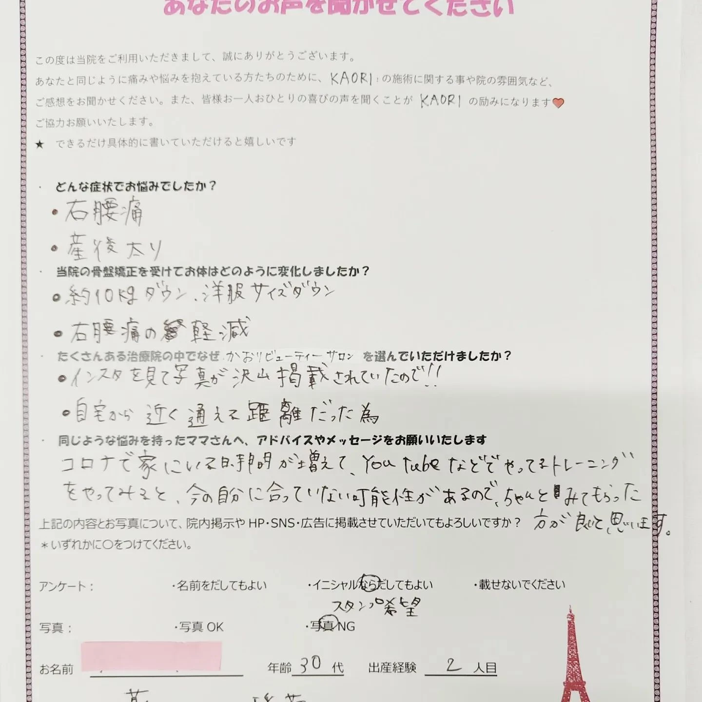 【あんなに痛かったのは何だったのだろう!? 産前産後ケア専門... 【あんなに痛かったのは何だったのだろう!?産前産後ケア専門かおりビューティサロン草加市】今回、ご紹介させていただきます患者さまはマタニティケアから通われていて産後の不調を治したいと思って引…