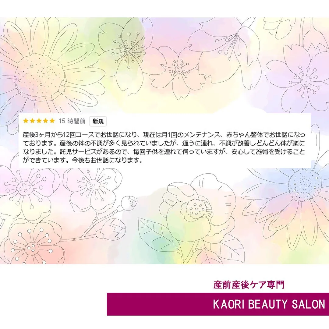 うれしい!!!!産後3ヶ月から通っていただいているママさんからグーグルクチコミをいただきました(*^^*)ご紹介させていただきます。-—————————————————————産後3ヶ月から12回コースでお世話になり、現…