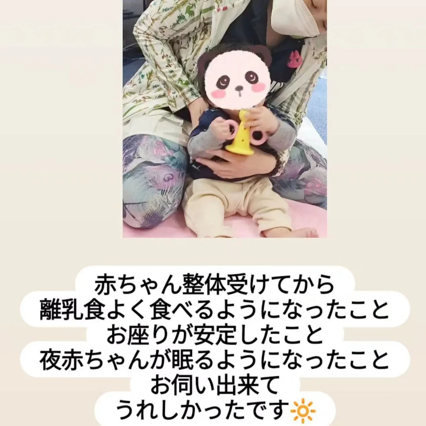 【当院では◯◯◯◯整体もあります】赤ちゃん整体受けてから離乳食よく食べるようになったことお座りが安定したこと夜赤ちゃんが眠るようになったことお伺い出来てうれしかったです🔆赤ちゃんのことでお悩みの…