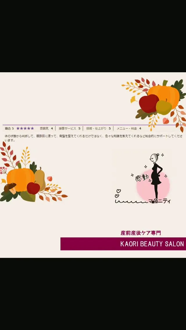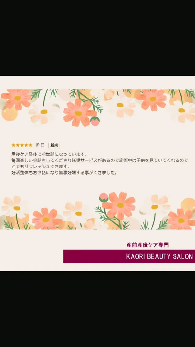 (緑色で数字を□に囲っています)みなさま、こんにちは! 産前産後ケア専門かおりビューティサロンです。 私たちは、みなさまの日常をよりリラックスできるものにするため、 エッセンシャルオイルの香…