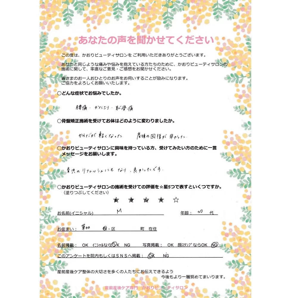 施術後に、うれしいメッセージをいただきました! 施術後に、うれしいメッセージをいただきました!----------------------------------------------------------------『かおり先生本日もありがとうございましたこの約2ヶ月の期間、自分の身体と向き合う…