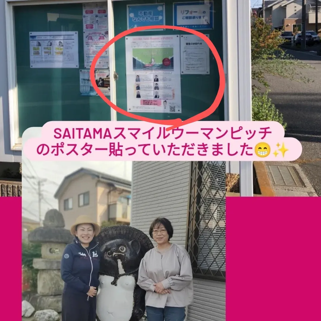 @長栄商事さんに @長栄商事さんに私が出場するSAITAMAスマイルウーマンピッチ応援していただきました☺️💗なんと💡雨よけのあるところに丁寧に貼っていただきました!なんとも、ありがたいです(^^)✨@長栄商事さんから、元気…