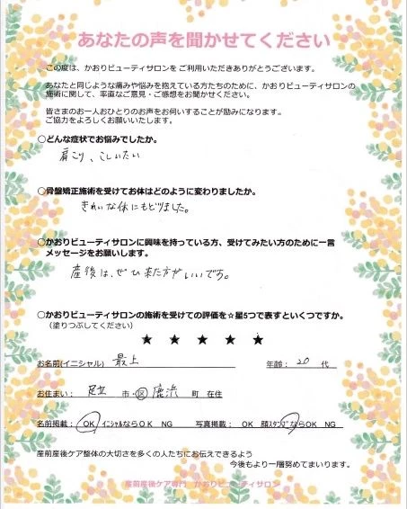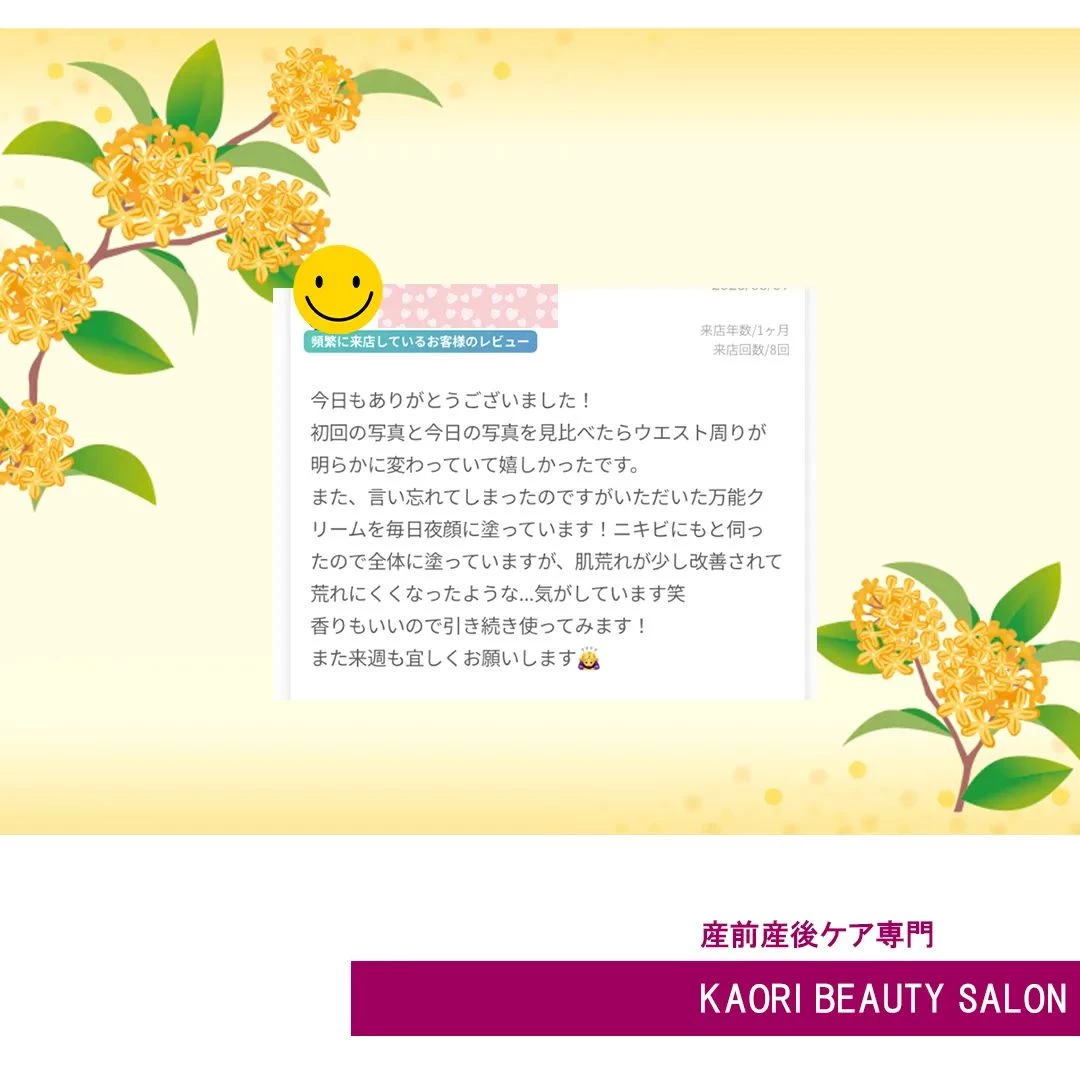 施術後に、うれしいメッセージをいただきました! 施術後に、うれしいメッセージをいただきました!----------------------------------------------------------------『今日もありがとうございました!初回の写真と今日の写真を見比べたらウエスト周り…